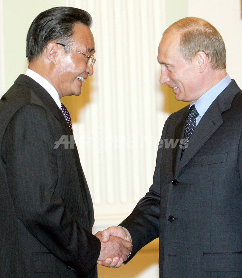 【モスクワ/ロシア 30日 AFP】30日、「上海協力機構(Shanghai Cooperation Organization、SCO)」加盟各国の議会の議長らがモスクワのクレムリン(Kremlin)宮殿に集まり、将来の協力関係に関する共同声明採択を前に、ウラジーミル・プーチン(Vladimir Putin)露大統領を交えて会合を行った。参加国はロシア、中国、カザフスタンのほか、中央アジアの3か国。写真は、SCOの会合に出席する加盟各国の議会の議長たち。(c)AFP/ALEXANDER NEMENOV
