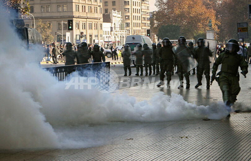 ニュース 政治・経済 首都で教育改革求めるデモ、過去30年間で最大規模 - チリ 2006年5月31日 5:16 発信地:チリ [ 中南米 チリ ] このニュースをシェア ‹ › ❮ 1/4 ❯ 写真は、学生に催涙弾を投げる機動隊。(c)AFP/DAVID LILLO 画像作成中 ! 【サンティアゴ/チリ 31日 AFP】サンティアゴ(Santiago)で30日、教育改革を求める学生と警察隊との衝突があり、警察は高圧放水銃や催涙弾を使ってデモ隊に対抗した。今回のデモは、学生によるものとしては過去30年間で最大規模。第一報によると、中等学校の学生や教師および学校職員など約40万人が授業をボイコットした。写真は、学生に催涙弾を投げる機動隊。(c)AFP/DAVID LILLO 政治・経済 一覧へ> メディア・報道関係・法人の方向け 写真・動画 購入のお問合せ>