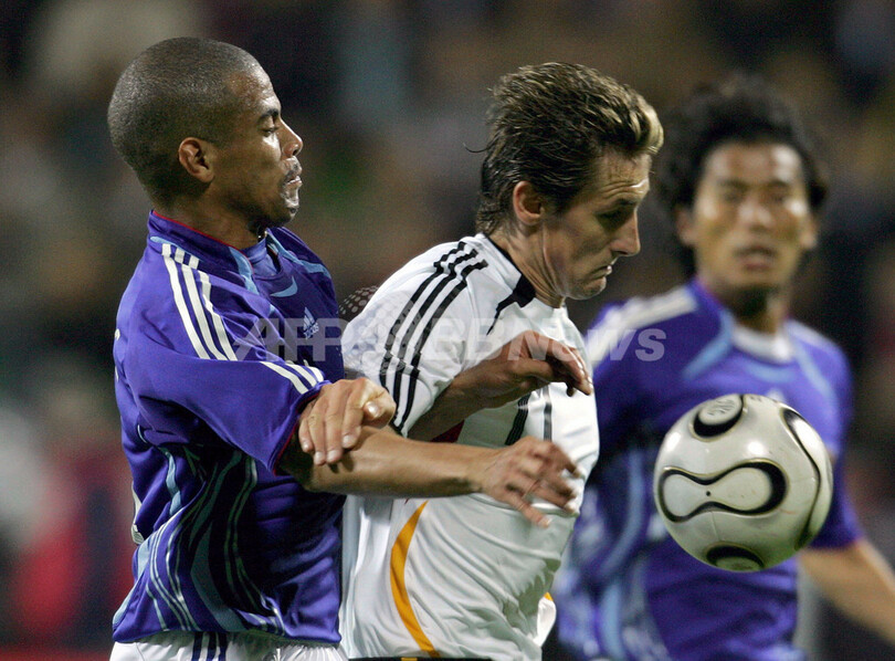 【レバークーゼン/ドイツ 30日 AFP】サッカー・親善試合、ドイツvs日本。日本の高原直泰(Naohiro Takahara)は、後半20分にこの日自身2点目の得点をゴール左隅に決める。しかしその後はドイツに巻き返しされ、2-2の同点で引き分けた。6月9日から開催される06サッカーW杯のグループFに所属する日本はブラジル、クロアチア、オーストラリアと対戦する。(c)AFP/TOSHIFUMI KITAMURA