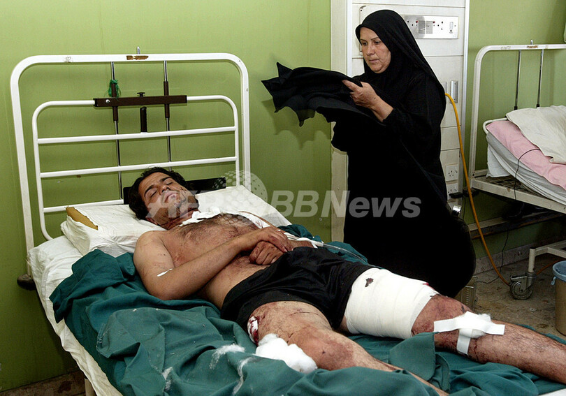 【バグダッド/イラク 31日 AFP】バグダッド北東部の都市フセイニヤ(Husseiniya)で30日、混み合った夕暮れ時の市場で車に仕掛けられた爆弾が爆発し、巻き込まれた市民22人が犠牲になった。また、イラク内務省当局者によると、拷問を受け頭を撃ち抜かれた遺体がイラク各地で少なくとも40体見つかっている。最も多く犠牲者を出したのはバグダッド東部のバラディヤト(Baladiyat)で16人の遺体が確認された。写真は31日、市場での爆発で負傷し、バグダッドの病院で治療を受ける市民。(c)AFP/WISAM SAMI