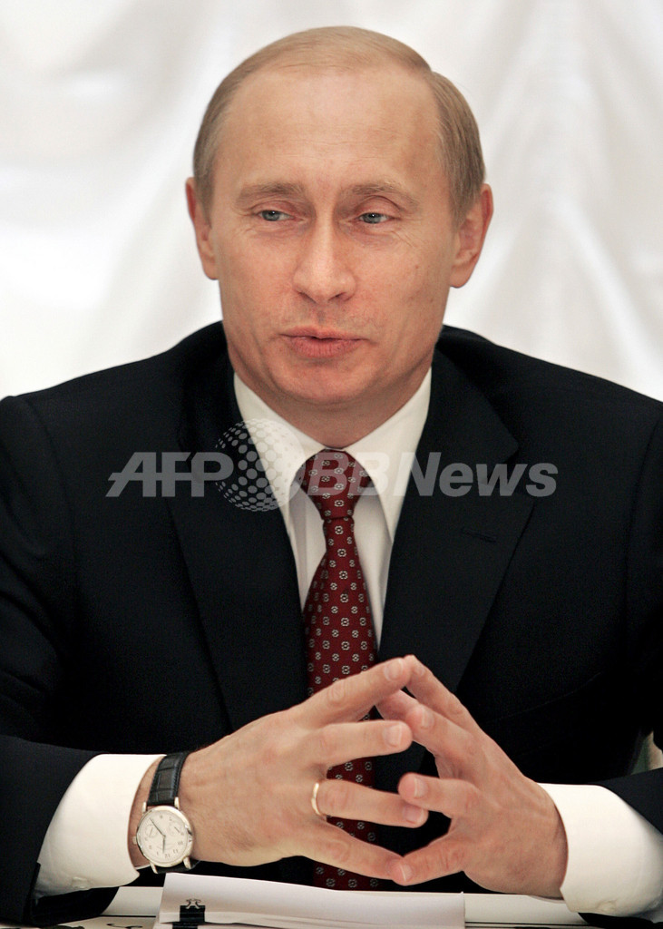【モスクワ/ロシア 31日 AFP】3日間の日程でロシアを公式訪問中のスロベニアのヤネズ・ヤンシャ(Janez Jansa)首相は31日、ウラジーミル・プーチン(Vladimir Putin)大統領と、モスクワのクレムリン(Kremlin)宮殿で会談した。ヤンシャ首相は、31日のコメルサント(Kommersant)紙のインタビューに対し、ガス供給に関するロシア-欧州連合(EU)間のエネルギー協定についてスロベニアは支持の立場だと語った。写真は会談を終え、握手を交わすプーチン大統領(右)とヤンシャ首相(左)。(c)AFP/MAXIM MARMUR