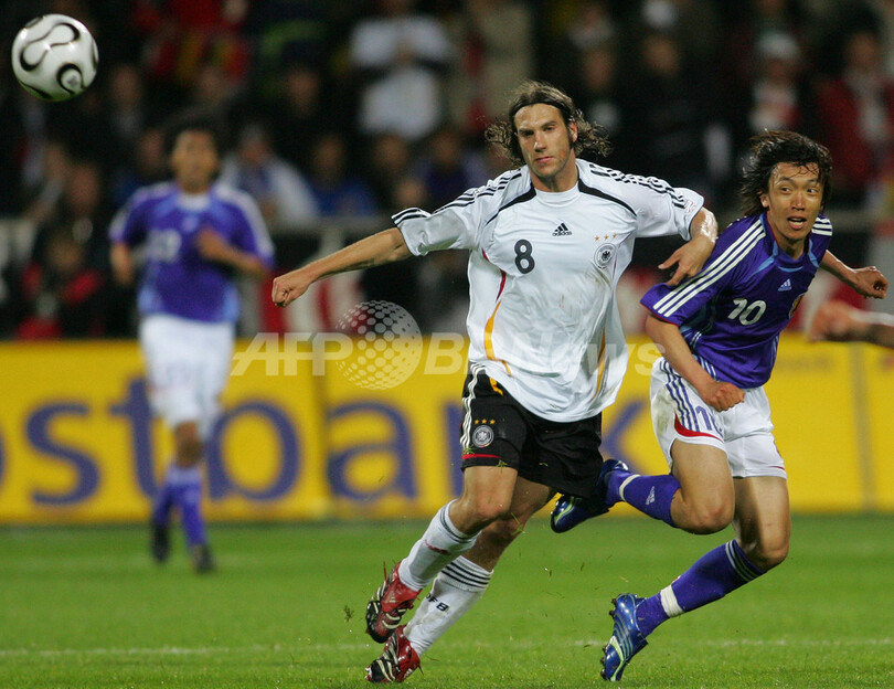 スポーツ サッカー <サッカー 親善試合>ドイツvs日本 - ドイツ 2006年5月31日 12:20 発信地:ドイツ [ ヨーロッパ ドイツ ] このニュースをシェア ‹ › ❮ 3/18 ❯ 写真はドイツのトルステン・フリンクス(%%Torsten Frings%%、左)と競り合う日本の中村俊輔(%%Shunsuke Nakamura%%、右)。(c)AFP BB/Shinya Haga 画像作成中 ! 【レバークーゼン/ドイツ 30日 AFP BB】サッカー・親善試合、ドイツvs日本。試合は日本が2得点を先制するもドイツが巻き返しをみせ、2-2の同点で引き分けた。6月9日から開催される06サッカーW杯のグループFに所属する日本はブラジル、クロアチア、オーストラリアと対戦する。写真は先制ゴールを決めた高原直泰(Naohiro Takahara)。(c)AFP BB/Shinya Haga サッカー 一覧へ> メディア・報道関係・法人の方向け 写真・動画 購入のお問合せ>