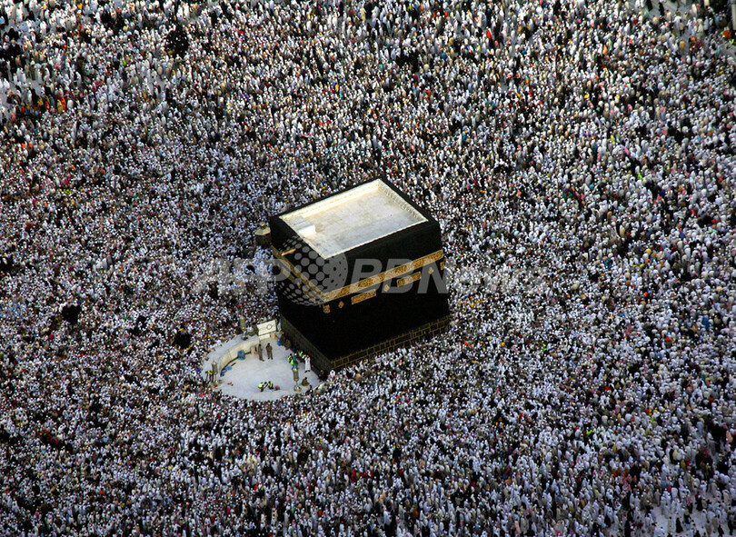【メッカ/サウジアラビア 1日 AFP】世界各地のイスラム教徒は2006年12月30日から、犠牲祭「イード・アル・アドハ(Eid al-Adha)」を行っている。同日は、年1度のメッカ(Mecca)大巡礼ハッジ(Hajj)の最終日でもあった。写真は、聖地メッカのグランドモスク(Grand Mosque)にあるカーバ神殿(Kaaba)の周りで祈りをささげるイスラム教徒たち(2006年12月31日撮影)。(c)AFP/MOHAMMED ABED