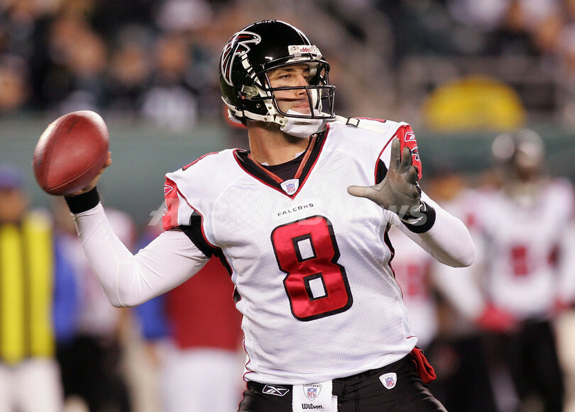 【フィラデルフィア/米国 31日 AFP】NFL・第17週、フィラデルフィア・イーグルス(Philadelphia Eagles)vsアトランタ・ファルコンズ(Atlanta Falcons)。イーグルスのQB、A・J・フィーリー(A.J. Feeley)は、3本のタッチダウンを含む33本中22本のパスを成功させ321ヤードを獲得した。試合は24-17でイーグルスが勝利し、通算成績を10勝6敗とし2季ぶりにNFC東地区での優勝を決めた。(c)AFP/Getty Images Jim McIsaac