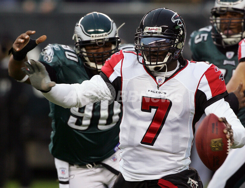 【フィラデルフィア/米国 31日 AFP】NFL・第17週、フィラデルフィア・イーグルス(Philadelphia Eagles)vsアトランタ・ファルコンズ(Atlanta Falcons)。イーグルスのQB、A・J・フィーリー(A.J. Feeley)は、3本のタッチダウンを含む33本中22本のパスを成功させ321ヤードを獲得した。試合は24-17でイーグルスが勝利し、通算成績を10勝6敗とし2季ぶりにNFC東地区での優勝を決めた。(c)AFP/Getty Images Jim McIsaac