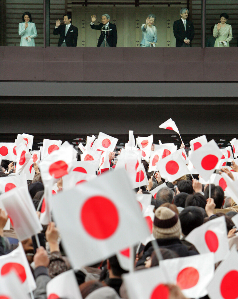 ニュース ライフ 皇居で新年恒例の一般参賀 - 東京 2007年1月2日 14:31 発信地:東京 [ アジア・オセアニア 東京 ] このニュースをシェア ‹ › ❮ 6/7 ❯ 写真は一般参賀に集まり日本国旗を振る人々。(c)AFP/KAZUHIRO NOGI 画像作成中 ! 【東京 2日 AFP】2日、新年にあたり天皇が国民から祝賀を受ける恒例の一般参賀が皇居で行われた。天皇・皇后夫妻や皇族が宮殿のベランダから、訪れた人々に手を振って応えられた。天候は曇り気味だったが、宮内庁の発表では午前中3回の参賀に合計で昨年よりも8450人多い4万4600人が訪れた。写真左から皇太子さま、天皇陛下、皇太子妃雅子さま、皇后美智子妃。(c)AFP/KAZUHIRO NOGI ライフ 一覧へ> メディア・報道関係・法人の方向け 写真・動画 購入のお問合せ>