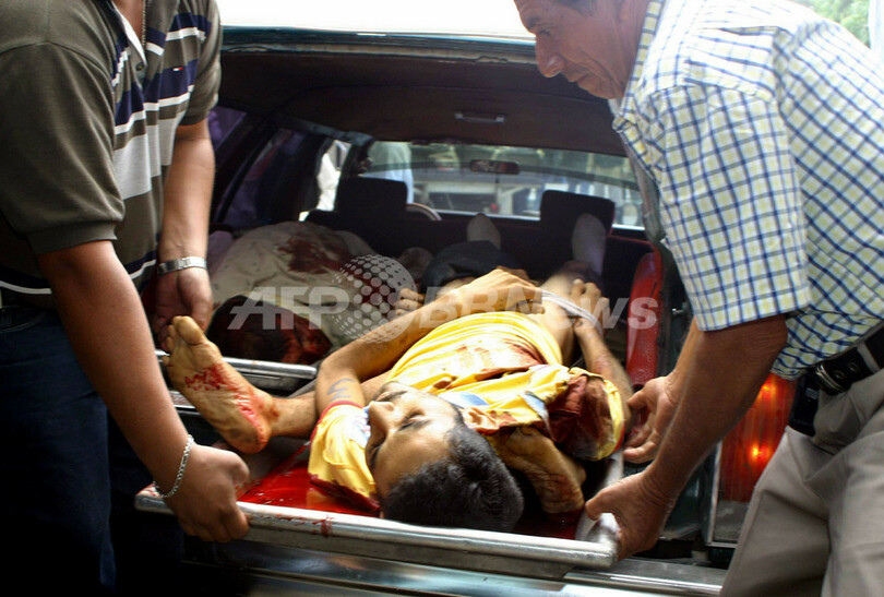 写真は一夜明けた2日、受刑者の遺体を運ぶ同刑務所の職員。(c)AFP/Julio COLMERAS
