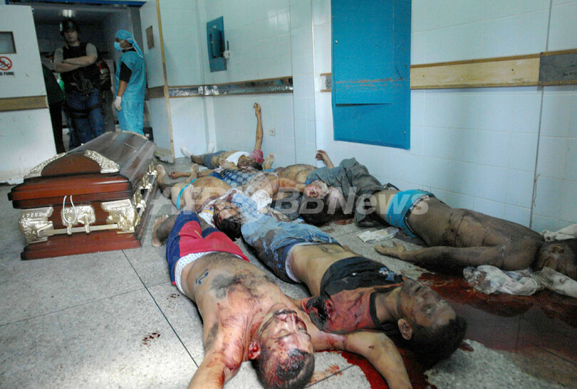 写真は一夜明けた2日、同刑務所の遺体安置所に並ぶ受刑者の遺体。(c)AFP/Julio COLMERAS