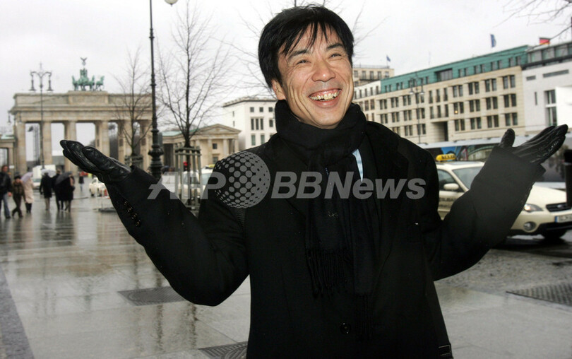 【ベルリン/ドイツ 3日 AFP】日本人俳優のイッセー尾形(Issei Ogata)が2日と3日にベルリンのMaxim Gorki Theaterで「イッセー尾形のとまらない生活2007」と題された舞台を行う。一人芝居のスタイルを確立したイッセー尾形は、日常生活の一場面をリアルに演じるコメディ舞台を行っている。そのかたわらTVやCMタレントとしても幅広く活躍している。写真は2日、ブランデンブルク門(Brandenburg Gate)でポーズをとるイッセー尾形。(c)AFP/MICHAEL KAPPELER
