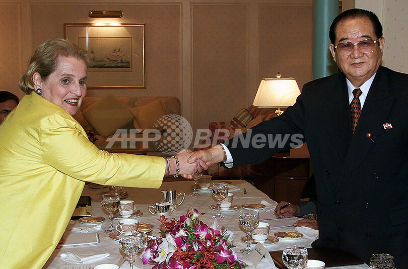 写真は2000年7月28日、アセアン閣僚会議と平行して行われた北朝鮮-米国外相対談の前にマドレーン・オルブライト(Madeleine Albright)元米国務長官と握手を交わす故白南淳外相。(c)AFP/Emmanuel DUNAND