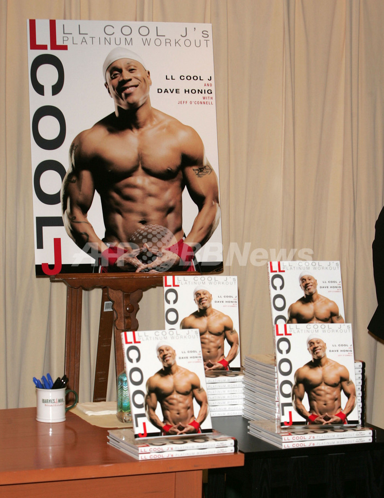 【ニューヨーク/米国 4日 AFP】米ヒップホップ・アーティストで俳優のLL・クール・J(LL Cool J)が3日、12月に発売した著書「LL Cool J’s Platinum Workout」のサイン会に登場した。自身のパーソナル・トレーナーのデイヴ・ホニグ(Dave Honig)と共に著作した同フィットネス本は、音楽会でも上位を争う肉体を誇るLL・クール・Jのフィットネス法を記したもので、食事法から筋トレまでタイプに合わせた肉体改造法を紹介している。写真は同著を手にポーズを取るLL・クール・J。(c)AFP/Getty Images Peter Kramer