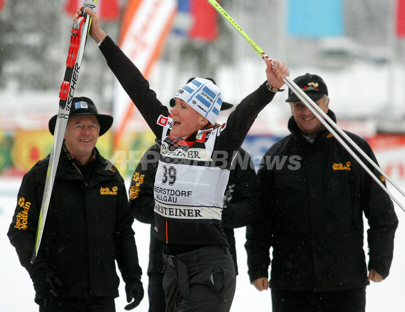 【オーベルストドルフ/ドイツ 3日 AFP】クロスカントリーW杯(FIS WORLD CUP CROSS-COUNTRY 2006/07)、ツール・ド・スキー(TOUR DE SKI)・第3ステージ、女子10キロメートル・クラシカル。スロベニアのペトラ・マジッチ(Petra Majdic)は、28分44秒8のタイムでステージ優勝を飾り総合2位に順位を上げた。2位にはノルウェーのクリスティン・ステイラ(Kristin Steira、左)が、3位にはフィンランドのビルピ・クイトゥネン(Virpi Kuitunen、右)がそれぞれ入った。(c)AFP/DDP ROBERT MICHAEL
