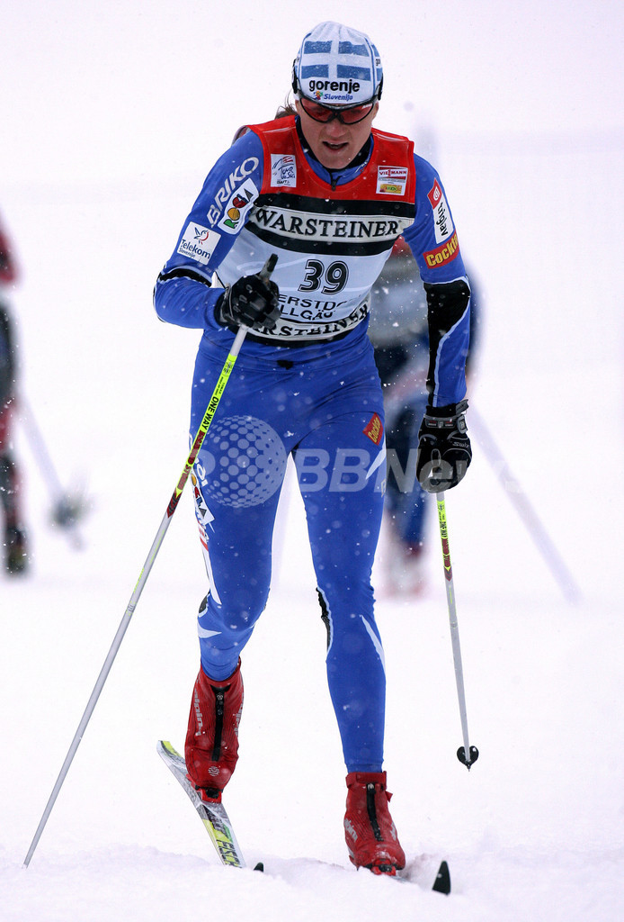 【オーベルストドルフ/ドイツ 3日 AFP】クロスカントリーW杯(FIS WORLD CUP CROSS-COUNTRY 2006/07)、ツール・ド・スキー(TOUR DE SKI)・第3ステージ、女子10キロメートル・クラシカル。スロベニアのペトラ・マジッチ(Petra Majdic)は、28分44秒8のタイムでステージ優勝を飾り総合2位に順位を上げた。2位にはノルウェーのクリスティン・ステイラ(Kristin Steira、左)が、3位にはフィンランドのビルピ・クイトゥネン(Virpi Kuitunen、右)がそれぞれ入った。(c)AFP/DDP ROBERT MICHAEL