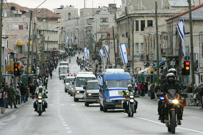 【エルサレム/イスラエル 4日 AFP】30年近くエルサレム市長を務めたテディ(テオドール)・コレック(Teddy Kollek)氏が2日、エルサレム(Jerusalem)の老人施設で死去した。享年95歳。イスラエル放送が報じた。イスラエル労働党(the Israeli Labour part)の重鎮でもあったコレック元市長は、1911年に現在のオーストリアで生まれた後、1935年に29歳で英国統治下のパレスチナに移住。1948年のイスラエル建国直後に勃発した第一次中東戦争時は、ユダヤ人武装組織ハガナ(Haganah)に武器供与を行った。また、米国在住のユダヤ人らと積極的に強力関係を結び、現在の在米ユダヤ人によるイスラエルへの資金援助の土台を築いた。1965年にエルサレム市長に就任、1993年の市長選でエフド・オルメルト(Ehud Olmert)現首相に敗れるまでの28年間、市長を務めた。元市長の葬儀は4日、エルサレムで営まれた。写真はエルサレム市街で4日、コレック元市長葬送の車列。(c)AFP/YOAV LEMMER