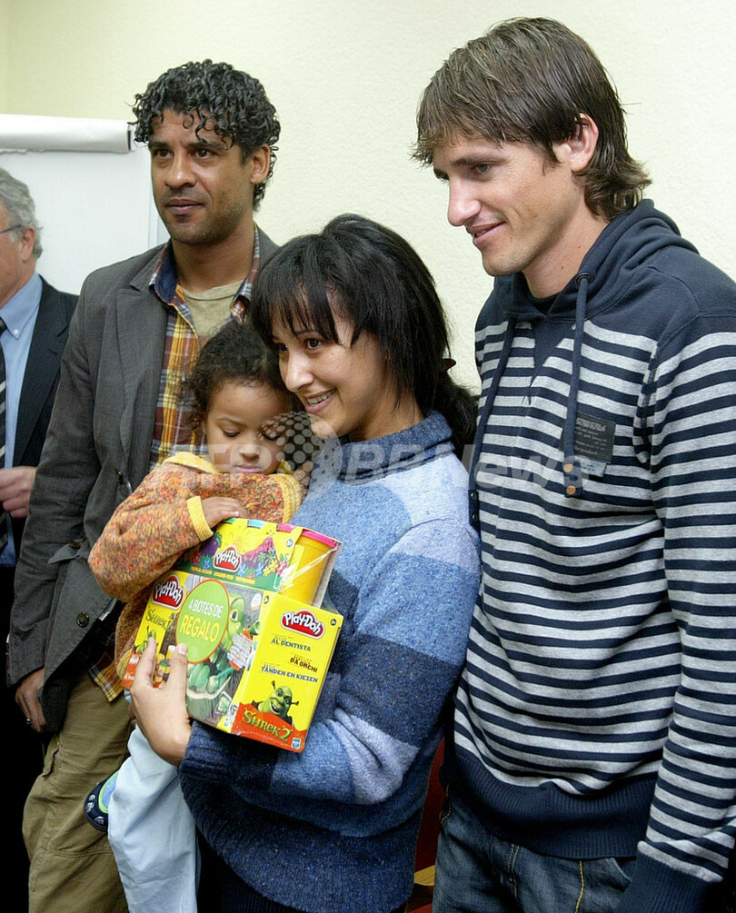 【バルセロナ/スペイン 4日 AFP】サッカー、スペイン・リーガエスパニョーラ1部のバルセロナ(Barcelona)の選手達は、新年の恒例の行事となっているバルセロナ近郊の小児病院の訪問を行い、病気の子供達を見舞った。写真は、バル・デ・ブロン病院(Vall d’Hebron hospital)を訪問したフランク・ライカールト監督(Frank Rijkaard、左)とエジミウソン(Edmilson、右)。(c)AFP/CESAR RANGEL