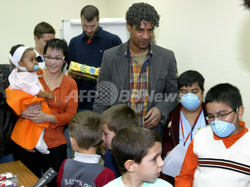 【バルセロナ/スペイン 4日 AFP】サッカー、スペイン・リーガエスパニョーラ1部のバルセロナ(Barcelona)の選手達は、新年の恒例の行事となっているバルセロナ近郊の小児病院の訪問を行い、病気の子供達を見舞った。写真は、バル・デ・ブロン病院(Vall d’Hebron hospital)を訪問したフランク・ライカールト監督(Frank Rijkaard、左)とエジミウソン(Edmilson、右)。(c)AFP/CESAR RANGEL