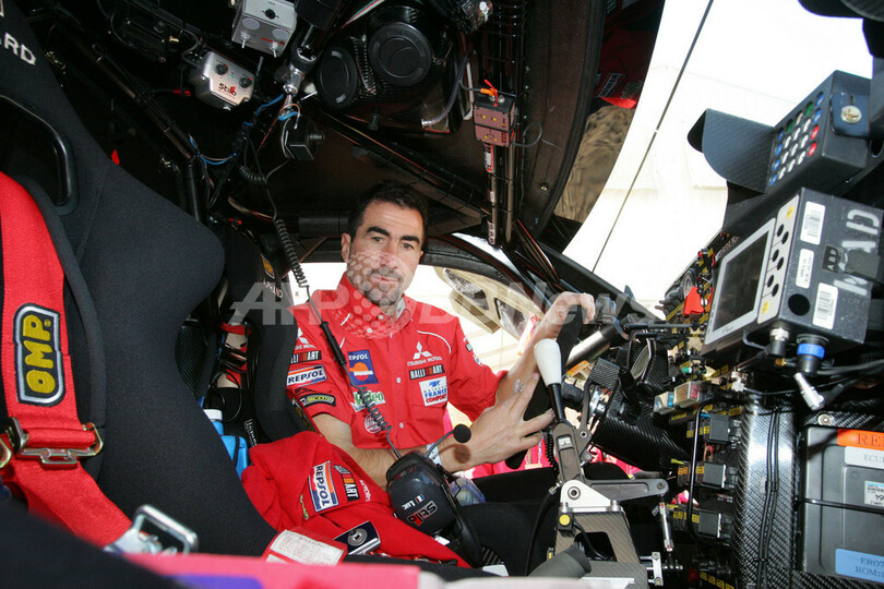 【リスボン/ポルトガル 4日 AFP】2007年1月6日から開幕するダカールラリー2007(Dakar rally 2007)の四輪部門に出場する三菱(Mitsubishi)のドライバー、(左から)ホアン・ナニ・ロマ(Joan Nani Roma、スペイン)、リュック・アルファン(Luc Alphand、フランス)、増岡浩(Hiroshi Masuoka、日本)、ステファン・ペテランセル(Stephane Peterhansel、フランス)は、スタート地点となるポルトガルの首都リスボンで車検・書類審査に臨んだ。29回目を迎える同ラリーは6日にリスボンをスタートしセネガルの首都ダカールまでの全15ステージで争われる。(c)AFP/DAMIEN MEYER