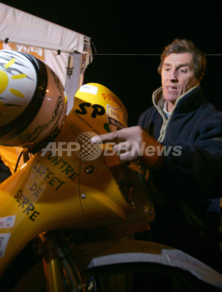【リスボン/ポルトガル 4日 AFP】2007年1月6日から開幕するダカールラリー2007(Dakar rally 2007)の四輪部門に出場する三菱(Mitsubishi)のドライバー、(左から)ホアン・ナニ・ロマ(Joan Nani Roma、スペイン)、リュック・アルファン(Luc Alphand、フランス)、増岡浩(Hiroshi Masuoka、日本)、ステファン・ペテランセル(Stephane Peterhansel、フランス)は、スタート地点となるポルトガルの首都リスボンで車検・書類審査に臨んだ。29回目を迎える同ラリーは6日にリスボンをスタートしセネガルの首都ダカールまでの全15ステージで争われる。(c)AFP/DAMIEN MEYER