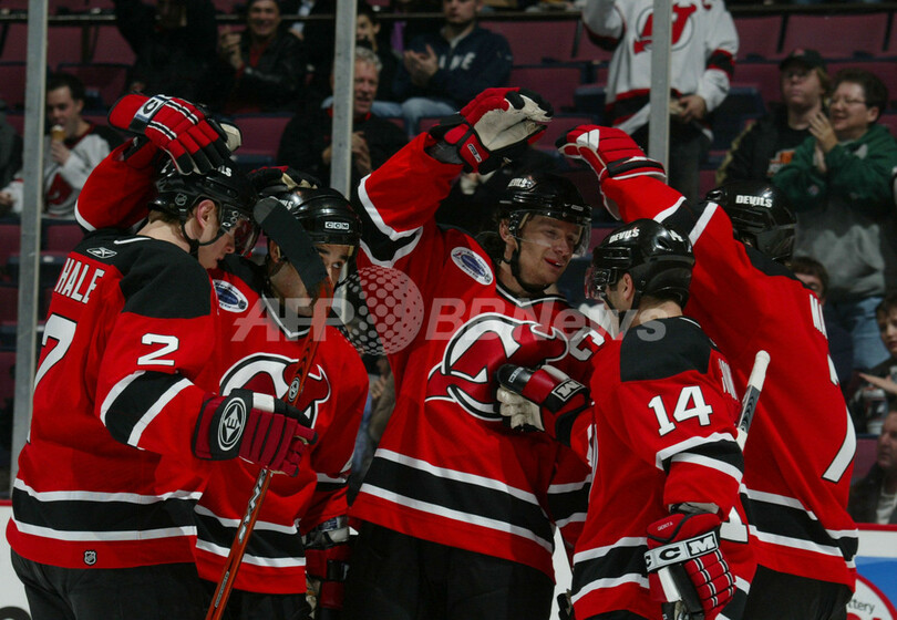【イーストルーサーフォード/米国 4日 AFP】06-07NHL、ニュージャージー・デビルズ(New Jersey Devils)vsニューヨーク・アイランダーズ(New York Islanders)。デビルズのザック・パリーゼ(Zach Parise)は、2ゴールを挙げる活躍でこの試合のファーストスターズに選出された。試合はデビルズが4-3でアイランダーズに勝利し、今季23勝目を挙げた。写真は第1ピリオドに2得点目を決めて喜ぶパリーゼ。(c)AFP/Getty Images Jim McIsaac