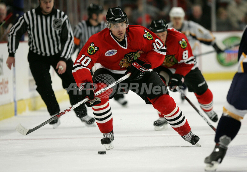 【シカゴ/米国 5日 AFP】06-07NHL、シカゴ・ブラックホークス(Chicago Blackhawks)vsナッシュビル・プレデターズ(Nashville Predators)。勝利を決めプレデターズのゴーリー、クリス・マソン(Chris Mason、右)はチームメイトのGreg Zanonと喜び合う。試合はプレデターズが8-3でブラックホークスに快勝し、今季27勝目を挙げた。(c)AFP/Getty Images Jonathan Daniel
