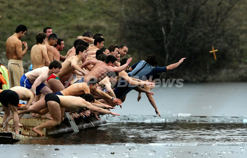 ニュース ライフ 公現祭、十字架をつかめば無病息災 - ブルガリア 2007年1月6日 21:37 発信地:ブルガリア [ ヨーロッパ ブルガリア ] このニュースをシェア ‹ › ❮ 1/3 ❯ 写真は同日、水に飛び込む男性たち。(c)AFP/DIMITAR DILKOFF 画像作成中 ! 【ソフィア/ブルガリア 6日 AFP】キリスト教の祝祭日「公現祭(Epiphany)」にあたる6日、真冬のソフィア(Sofia)の湖で、男性らが十字架をつかみ取る催しが行われた。東方正教会の聖職者が十字架を湖に投げ込み、一番最初につかんだ男性はその年一年間健康に過ごせると信じられている。写真は同日、水に飛び込む男性たち。(c)AFP/DIMITAR DILKOFF ライフ 一覧へ> メディア・報道関係・法人の方向け 写真・動画 購入のお問合せ>