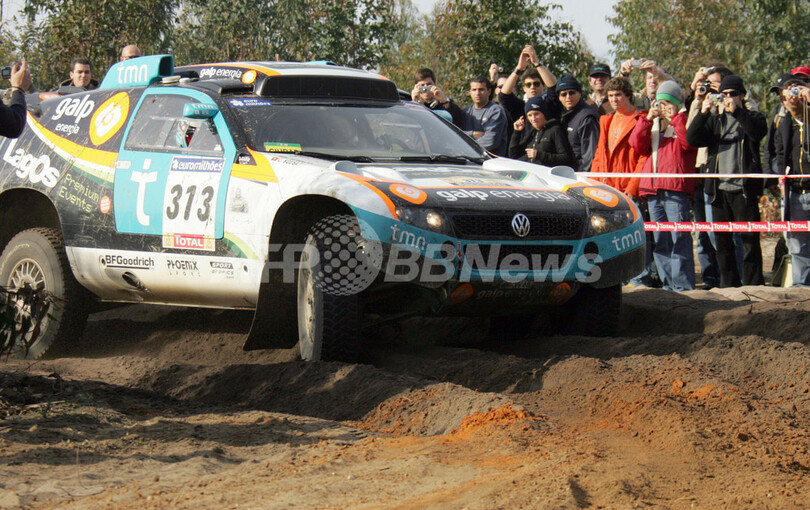 【ポルティマン/ポルトガル 6日 AFP】ダカールラリー2007(Dakar rally 2007)、四輪部門・第1ステージ(リスボンからポルティマン、競走区間117キロメートル/総距離464キロメートル)。フォルクスワーゲン(Volkswagen)のカルロス・ソーザ(Carlos Souza、ポルトガル)は、トップタイム1時間20分38秒をマークしてステージ優勝を飾った。(c)AFP/DAMIEN MEYER