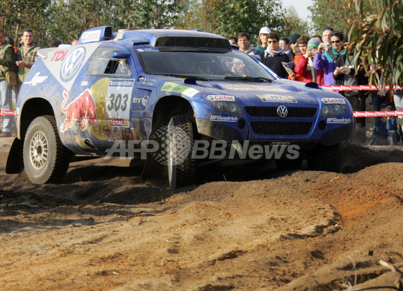 【ポルティマン/ポルトガル 6日 AFP】ダカールラリー2007(Dakar rally 2007)、四輪部門・第1ステージ(リスボンからポルティマン、競走区間117キロメートル/総距離464キロメートル)。フォルクスワーゲン(Volkswagen)のカルロス・ソーザ(Carlos Souza、ポルトガル)は、トップタイム1時間20分38秒をマークしてステージ優勝を飾った。(c)AFP/DAMIEN MEYER