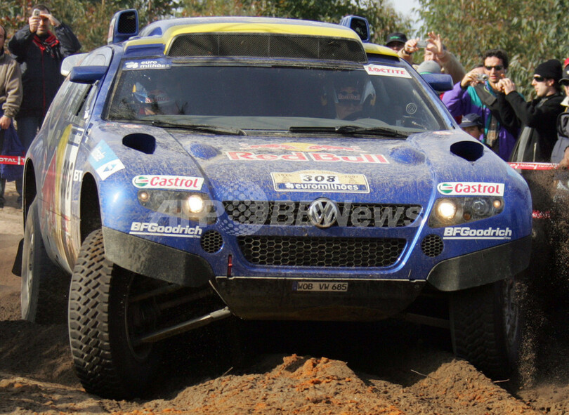 【ポルティマン/ポルトガル 6日 AFP】ダカールラリー2007(Dakar rally 2007)、四輪部門・第1ステージ(リスボンからポルティマン、競走区間117キロメートル/総距離464キロメートル)。フォルクスワーゲン(Volkswagen)のカルロス・ソーザ(Carlos Souza、ポルトガル)は、トップタイム1時間20分38秒をマークしてステージ優勝を飾った。(c)AFP/DAMIEN MEYER