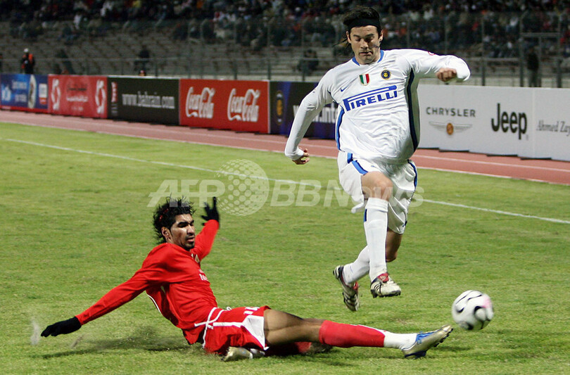 スポーツ サッカー <サッカー 親善試合>インテル 6ゴールを挙げてバーレーンに快勝 - バーレーン 2007年1月7日 5:05 発信地:バーレーン [ 中東・北アフリカ バーレーン ] このニュースをシェア ‹ › ❮ 3/4 ❯ 写真はバーレーンの%%Sayed Mohammed Adnan%%(左)にスライディングでボールをカットされるインテルのサンティアゴ・ソラーリ(%%Santiago Solari%%)。(c)AFP/ADAM JAN 画像作成中 ! 【リーファ/バーレーン 6日 AFP】サッカー・親善試合、バーレーン代表vsインテル(Inter Milan)。試合はインテルが6-1でバーレーンに完勝した。写真はバーレーンのラシド・アル・ドサリ(Rashid al-Dosari、左)を手で制してボールをキープするインテルのサンティアゴ・ソラーリ(Santiago Solari)。(c)AFP/ADAM JAN サッカー 一覧へ> メディア・報道関係・法人の方向け 写真・動画 購入のお問合せ>