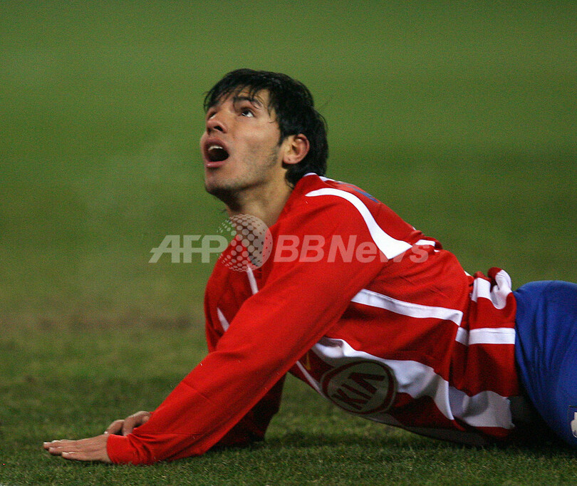 【マドリード/スペイン 6日 AFP】サッカー、スペイン・リーガエスパニョーラ1部第17節、アトレティコ・マドリード(Atletico de Madrid)vsヒムナスティク(Gimnastic)。試合は0-0に引き分けに終わった。写真は、ヒムナスティクのGKルベン・ペレス (Ruben Perez)の前に詰めるアトレティコ・マドリードのセルヒオ・アグエロ(Sergio Aguero、右)。(c)AFP/PIERRE-PHILIPPE MARCOU