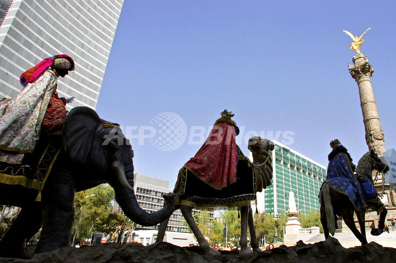 【メキシコシティ/メキシコ 7日 AFP】キリスト教の祝祭日「公現祭(Epiphany)」にあたる6日、世界各地で様々な祝いの行事が行なわれる中、メキシコシティでは、様々な衣装を身につけた人々がパレードを行なった。「公現祭」とはキリスト生誕を知った東方の三博士が、星に導かれてベツレヘムまでキリストの礼拝に訪れたとされる日を記念するもの。写真は、パレードに参加したジャグラーたち。(c)AFP/fredo ESTRELLA