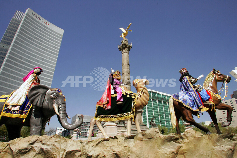 【メキシコシティ/メキシコ 7日 AFP】キリスト教の祝祭日「公現祭(Epiphany)」にあたる6日、世界各地で様々な祝いの行事が行なわれる中、メキシコシティでは、様々な衣装を身につけた人々がパレードを行なった。「公現祭」とはキリスト生誕を知った東方の三博士が、星に導かれてベツレヘムまでキリストの礼拝に訪れたとされる日を記念するもの。写真は、パレードに参加したジャグラーたち。(c)AFP/fredo ESTRELLA