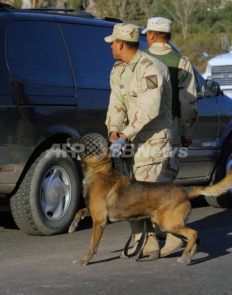 【ティフアナ/メキシコ 7日 AFP】フェリペ・カルデロン(Felipe Calderon)大統領は、組織的犯罪の撲滅に向けて、ミチョアカン(Michoacan)州およびバハカリフォルニア(Baja California)州で治安強化に力を入れている。写真は6日、北部バハカリフォルニア州のティフアナ(Tijuana)とテカテ(Tecate)を結ぶ幹線道路に設けられた検問所近くで警備にあたる連邦警察隊員。(c)AFP/Omar TORRES