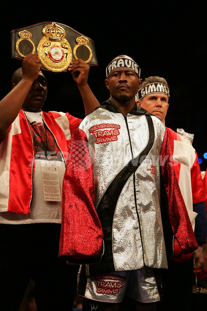 【フロリダ/米国 6日 AFP】ボクシング、WBA世界スーパーウェルター級タイトルマッチ12回戦。挑戦者のトラビス・シムス(Travis Simms)は、WBA世界スーパーウェルター級チャンピオンのホセ・アントニオ・リベラ(Jose Antonio Rivera)と対戦。試合は、挑戦者シムスが王者リベラに9回TKOで勝利を収め、新チャンピオンとなった。(c)AFP/Getty Images Marc Serota
