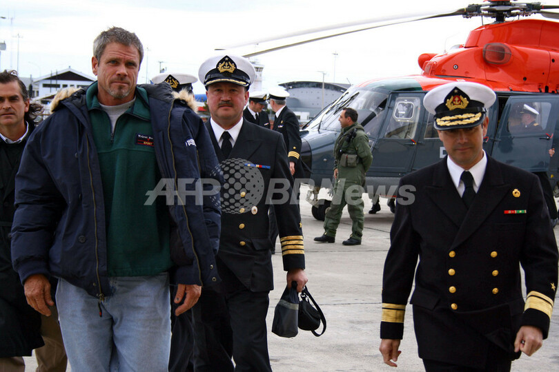 【プンタアレナス/チリ 8日 AFP】チリ南部の沖合で5日、同沖合を3日間ヨットで漂流していた米国人のKen Barnesさん(47)がチリの海軍と漁船に救助された。Barnesさんは2日深夜、自身の乗るヨットPrivateer号が、ホーン岬(Cape Horn)西部の太平洋上とマゼラン(Magellan)海峡付近を漂流していると、衛星電話を使って遭難信号を送った。海軍は3日、遭難信号が発信された地域上空に飛行機を飛ばしたが、豪雨と濃霧のため発見できなかった。Barnesさんは2006年10月28日に米国カリフォルニア州(California)のロング・ビーチ(Long Beach)から単独航行に出発、ホーン岬を周り大西洋を北に向かい、2007年4月に米国東海岸に到着する計画を立てていた。写真は7日、チリ南端のプンタアレナス(Punta Arenas)の空港に到着したBarnesさん。(c)AFP/JUAN PABLO FERNANDEZ
