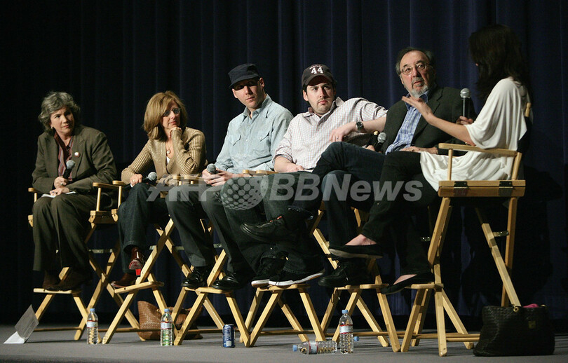 【ハリウッド/米国 8日 AFP】ハーモニー・ゴールド・シアター(Harmony Gold Theatre)で7日、全米脚本家協会(Writers Guild of America)主催の脚本家によるパネル・ディスカッションが開催された。「The Serious Business Of Writing Comedy」と題された同ディスカッションでは、コメディの脚本を書ことについて、現在の映画産業で手腕を振るうプロフェッショナルたちの生の声が聞かれた。写真は同ディスカッションに参加する脚本家のジェームズ・L・ブルックス(James L. Brooks、左)とアライン・ブロッシュ・マッケナ(Aline Brosh McKenna、右)。(c)AFP/Getty Images Mark Mainz