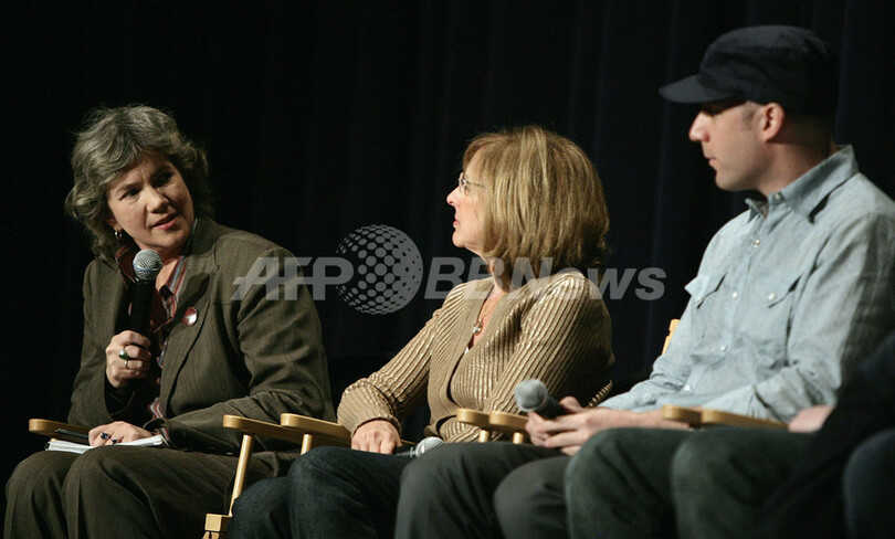 【ハリウッド/米国 8日 AFP】ハーモニー・ゴールド・シアター(Harmony Gold Theatre)で7日、全米脚本家協会(Writers Guild of America)主催の脚本家によるパネル・ディスカッションが開催された。「The Serious Business Of Writing Comedy」と題された同ディスカッションでは、コメディの脚本を書ことについて、現在の映画産業で手腕を振るうプロフェッショナルたちの生の声が聞かれた。写真は同ディスカッションに参加する脚本家のジェームズ・L・ブルックス(James L. Brooks、左)とアライン・ブロッシュ・マッケナ(Aline Brosh McKenna、右)。(c)AFP/Getty Images Mark Mainz