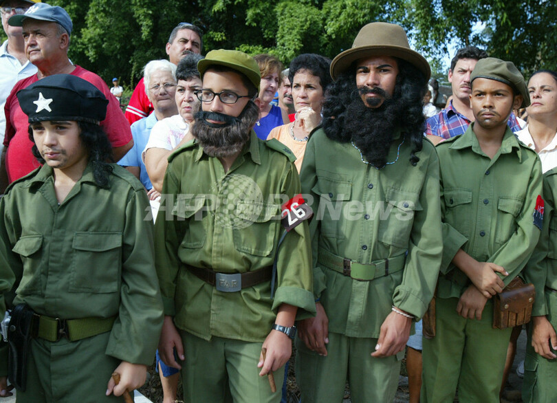 【ハバナ/キューバ 9日 AFP】1日に48回目の解放記念日を迎えた首都ハバナ(Havana)で8日、記念式典が行われた。1959年1月1日、当時のフルヘンシオ・バティスタ(Fulgencio Batista)大統領の独裁政権に対し、ゲリラ戦を続けていた革命軍がフィデル・カストロ(Fidel Castro)国家評議会議長に率いられてハバナを制圧、バティスタ大統領はドミニカ共和国へ国外逃亡した。写真は記念式典で、キューバ革命軍戦闘員に扮するキューバの子どもたち。(c)AFP/JUAN CARLOS BORJAS
