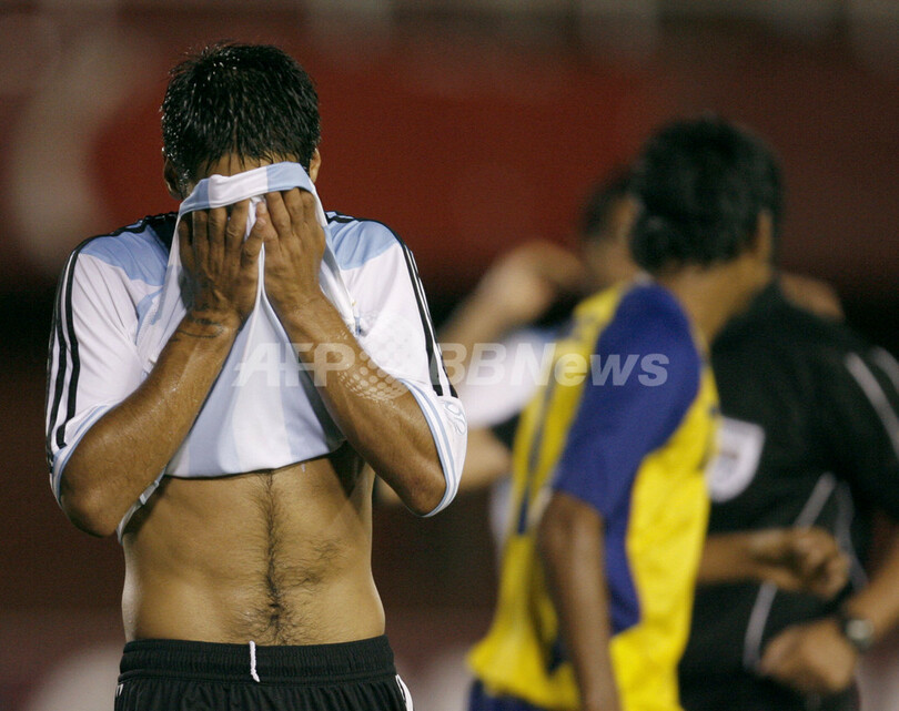 【シウダード・デル・エステ/パラグアイ 8日 AFP】サッカー、南米ユース選手権(2007 South American Youth Championship)・グループB、アルゼンチンvsエクアドル。試合は1-1の引き分けに終わり、両チーム共に勝ち点1ずつを分け合った。写真はアルゼンチンのマキシミリアーノ・モラレス(Maximiliano Moralez、右)とボールを競るエクアドルのVictor Valarezo。(c)AFP/Juan MABROMATA