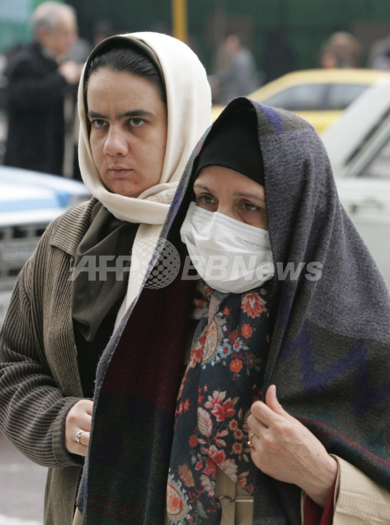 写真は、マスクをして首都テヘランを歩く女性。(C)AFP/ATTA KENARE
