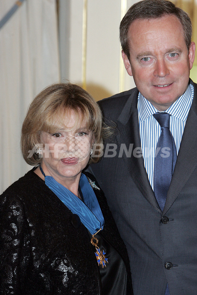 写真はルノー・ドヌデュー・ド・ヴァーブル文化大臣(Renaud Donnedieu de Vabres)よりコマンドゥールを贈られたジャンヌ・モロー。(c)AFP/MEHDI FEDOUACH