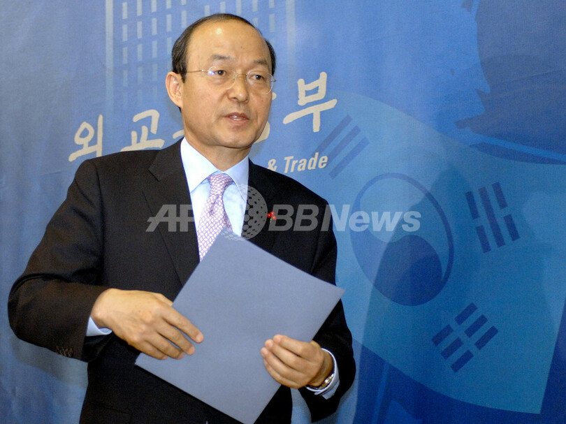 写真は外務省での定例会見に臨む宋外相(2006年12月28日撮影)。(c)AFP/JUNG YEON-JE