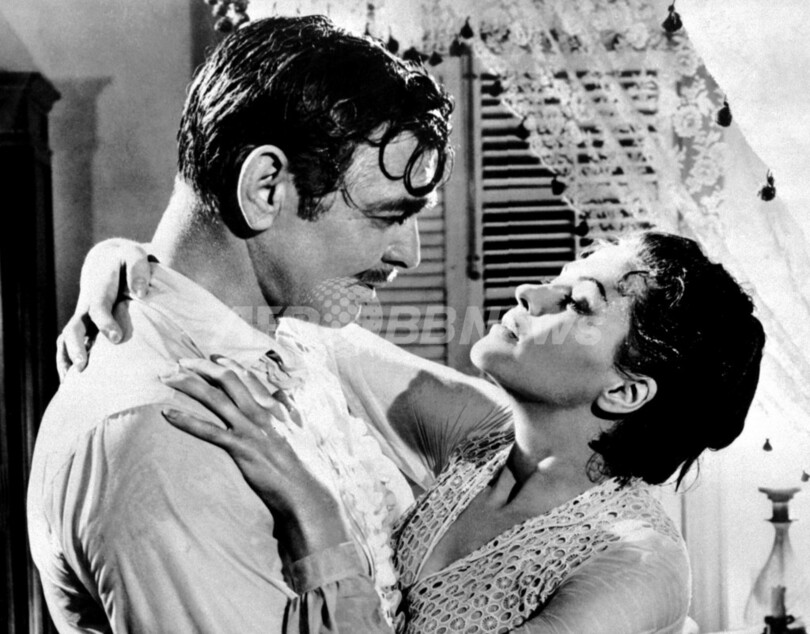 1941年「Harvard Here I Come!」で映画デビューを飾ったデ・カーロは100本近くの映画に出演した。その他の印象的な役どころは、「裏切りの街角(Criss Cross)」での俳優バート・ランカスター(Burt Lancaster)の相手役など。70年代80年代には「House of Shadows」や「アメリカン・ゴシック(American Gothic)」低予算のホラー映画に多く出演した。写真はラウール・ウォルシュ(Raoul Walsh)監督の1957年の映画「南部の反逆者(Band of Angels)」でクラーク・ゲーブル(Clark Gable、左)と共演するイヴォンヌ・デ・カーロ。(c)AFP