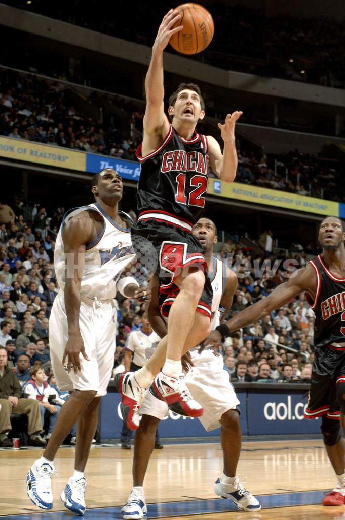 【ワシントンD.C./米国 10日 AFP】06-07NBA、ワシントン・ウィザーズ(Washington Wizards)vsシカゴ・ブルズ(Chicago Bulls)。ブルズのカーク・ハインリック(Kirk Hinrich)は、3ポイントシュートを6本決める活躍でゲームハイの33得点9アシストをマークするも、チームの勝利には繋がらなかった。試合は第1Q序盤に9点のリードを奪うも、その後はウィザーズに主導権を握られて逆転を許したブルズが103-113で敗れ、今季4度目の連敗を喫した。(c)AFP/Getty Images Mitchell Layton