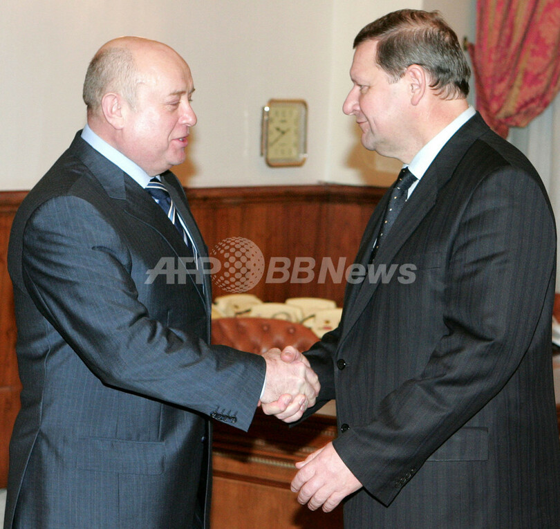 【モスクワ/ロシア 11日 AFP】天然ガス値上げを巡る対立からロシアがベラルーシを経由する欧州向け原油供給を停止していた問題で、ベラルーシのセルゲイ・シドルスキー(Sergei Sidorsky)首相は11日、モスクワ入りし、ミハイル・フラトコフ(Mikhail Fradkov)露首相と会談した。ベラルーシ政府筋によると、ベラルーシ側がロシア側の主張を受け入れ、同国ドルジュバ(Druzhba)を通るパイプラインに課した1トンあたり45ドルの関税の撤廃を決定したという。写真は11日、モスクワで会談に臨むシドルスキー首相とベラルーシ代表団(右から2人め)。(c)AFP