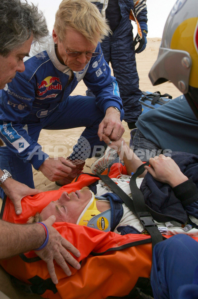 【ズエラット/モーリタニア 11日 AFP】ダカールラリー2007(Dakar rally 2007)、四輪部門・第6ステージ(タンタンからズエラット、競走区間394キロメートル/総距離817キロメートル)。総合6位からスタートしたBMWのゲラン・シシェル(Guerlain Chicherit、フランス)は、195キロメートル地点を通過後にクラッシュし途中棄権に終わった。(c)AFP/DAMIEN MEYER