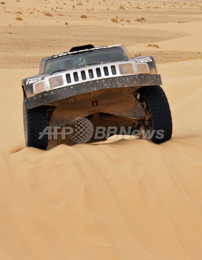 【ズエラット/モーリタニア 11日 AFP】ダカールラリー2007(Dakar rally 2007)、四輪部門・第6ステージ(タンタンからズエラット、競走区間394キロメートル/総距離817キロメートル)。総合36位からスタートしたハマー(Hummer)のロビー・ゴードン(Robby Gordon、米国)は、2時間58分57秒をマークしてステージ優勝を飾り、合計タイム19時間49分11秒で総合19位に順位を上げた。(c)AFP/DAMIEN MEYER