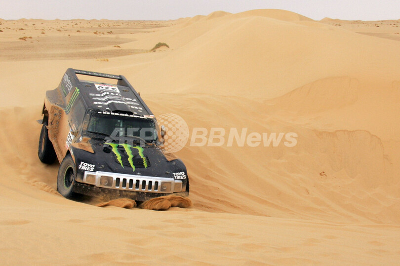 【ズエラット/モーリタニア 11日 AFP】ダカールラリー2007(Dakar rally 2007)、四輪部門・第6ステージ(タンタンからズエラット、競走区間394キロメートル/総距離817キロメートル)。総合36位からスタートしたハマー(Hummer)のロビー・ゴードン(Robby Gordon、米国)は、2時間58分57秒をマークしてステージ優勝を飾り、合計タイム19時間49分11秒で総合19位に順位を上げた。(c)AFP/DAMIEN MEYER