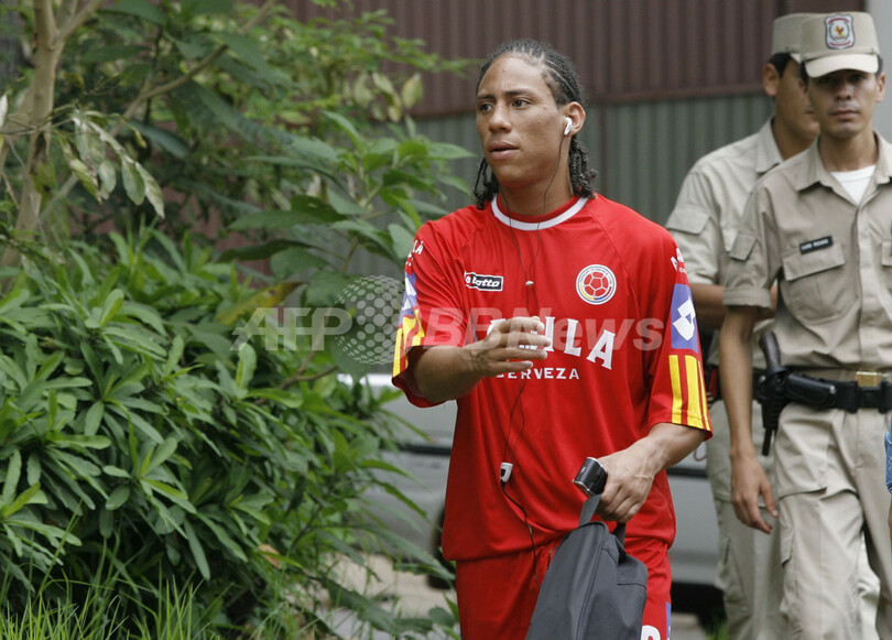 【シウダード・デル・エステ/パラグアイ 11日 AFP】サッカー、南米ユース選手権(2007 South American Youth Championship)・グループBに所属し初戦のアルゼンチン戦を勝利で飾ったコロンビアの選手たちは、13日のウルグアイ戦に向け調整練習を行った。写真は、ストレッチを行うカルロス・クインテーロ(Carlos Quintero)。(c)AFP/Juan MABROMATA