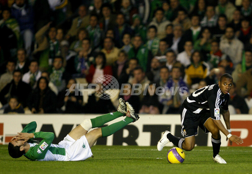 【セビリア/スペイン 11日 AFP】サッカー、スペイン国王杯(Copa del Rey 06-07)・5回戦、ベティス(Betis)vsレアル・マドリード(Real Madrid)、第1戦。ベティスのフェルナンド・メイラ(Fernando Meira、右)はレアル・マドリードのミゲル・トレス(Miguel Torres)とボールを奪い合う。試合は、両チームともに得点を挙げることは出来ず0-0のスコアレスドローに終わった。第2戦は、マドリードのホームで17日に行われる。(c)AFP/CRISTINA QUICLER